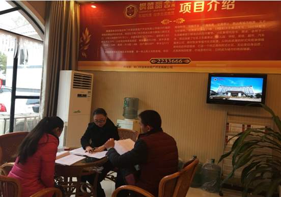 圖為業(yè)主正在簽訂購房合同