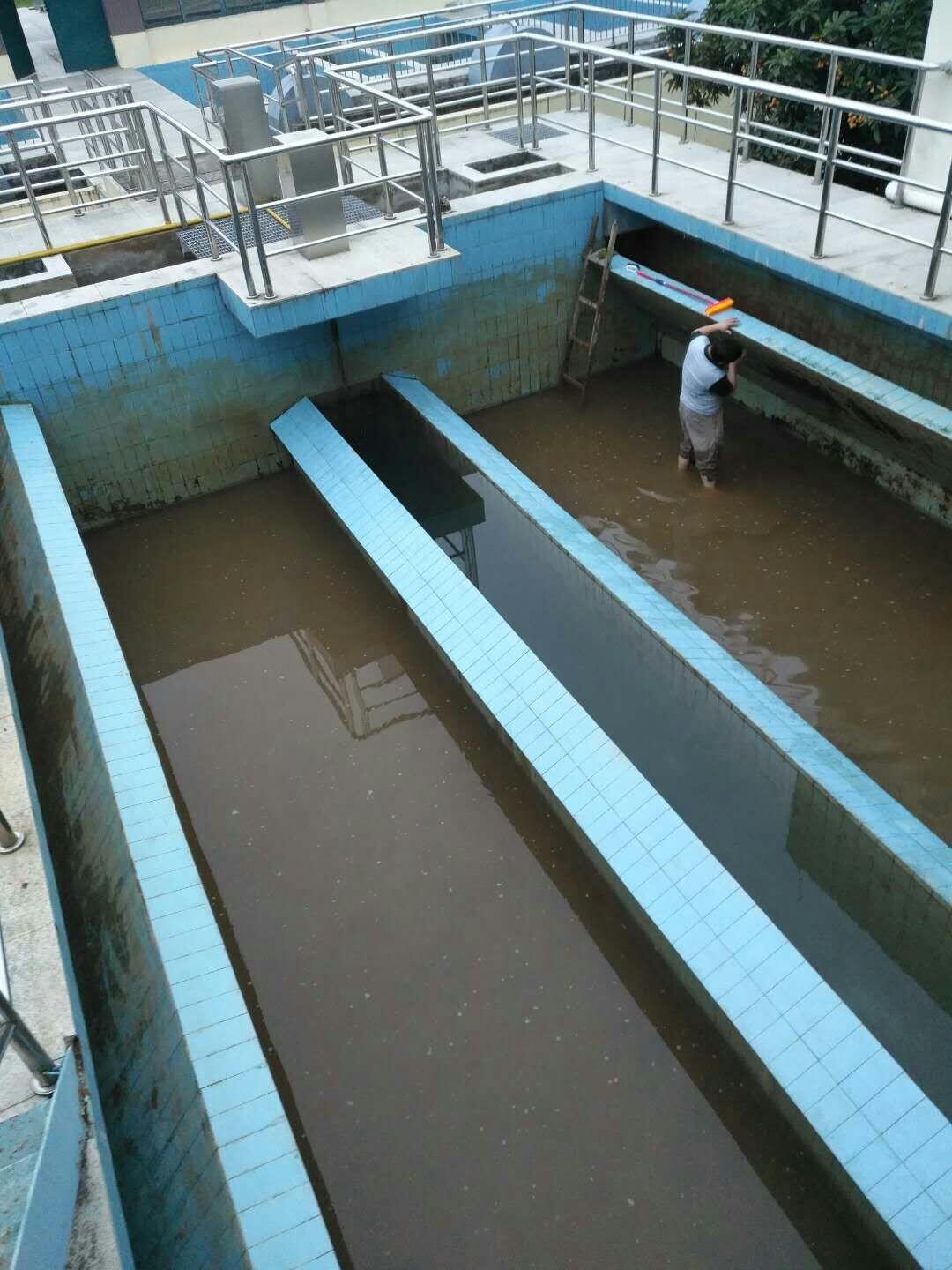 水廠濾池由于長時間不間斷運行,給出水帶來污染。在為期2天的清洗工作中,工作人員在濾池中認真鏟刮、清掃、沖洗濾池內(nèi)壁殘留不少淤泥、雜質(zhì)、青苔,清理過的濾池內(nèi)壁煥然一新。