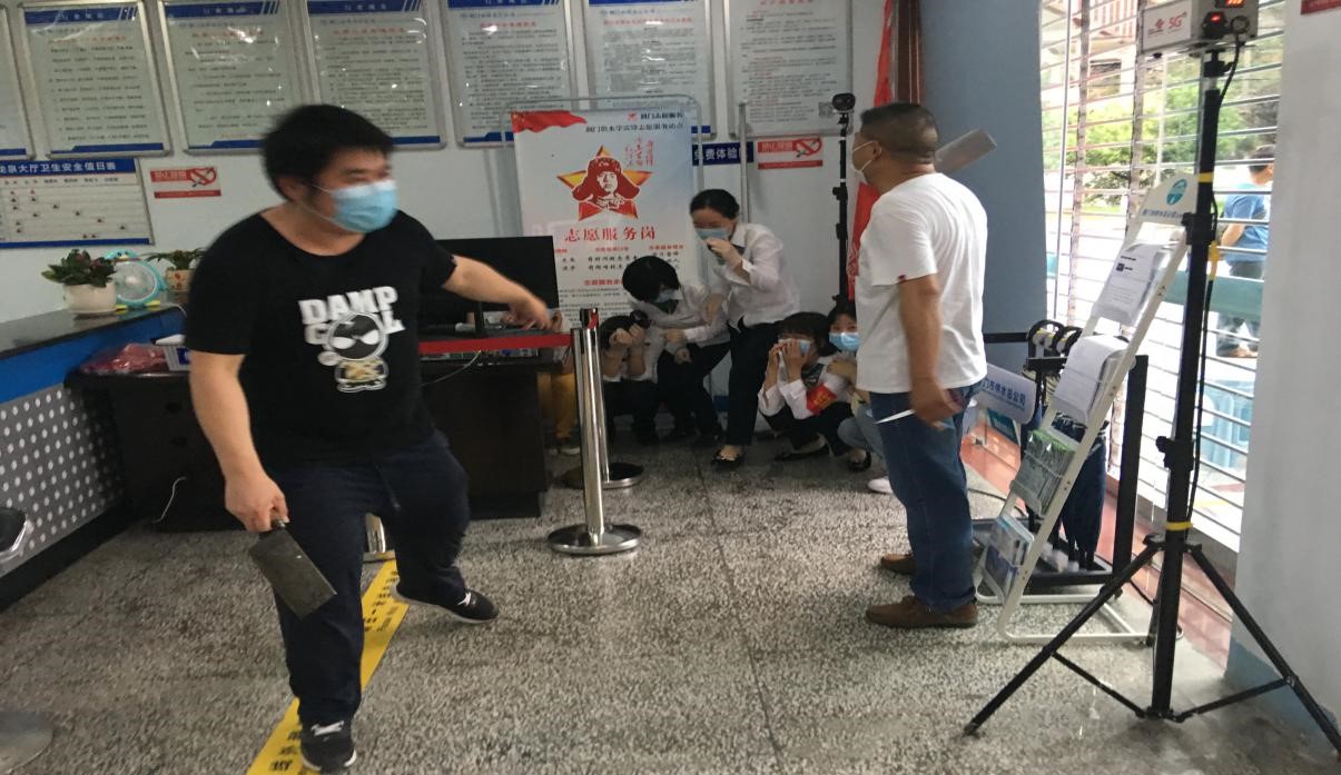 “搶劫!都老實(shí)點(diǎn)!雙手抱頭!蹲旁邊去……”兩蒙面男子持刀沖進(jìn)了收費(fèi)中心龍泉營(yíng)業(yè)廳。原來(lái),一場(chǎng)別開(kāi)生面的防盜搶演練正在進(jìn)行。