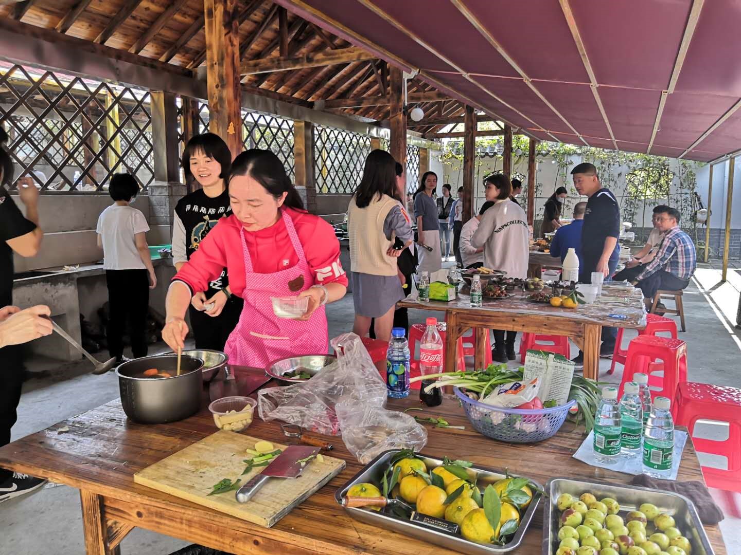 經(jīng)過兩個(gè)小時(shí)的緊張忙碌,一道道色香味俱全的美味佳肴陸續(xù)展示在大家面前。雖然都是家常菜,但品嘗著用自己汗水換來的勞動(dòng)成果,一個(gè)個(gè)喜笑顏開,大家像一家人一樣,圍坐在一起,互品互贊,其樂融融。