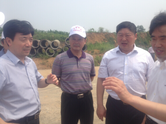 ![]() 市委書記萬勇(右二)、市長肖菊華(右一)、副市長鄭中華(左一)等領導觀摩施工現(xiàn)場