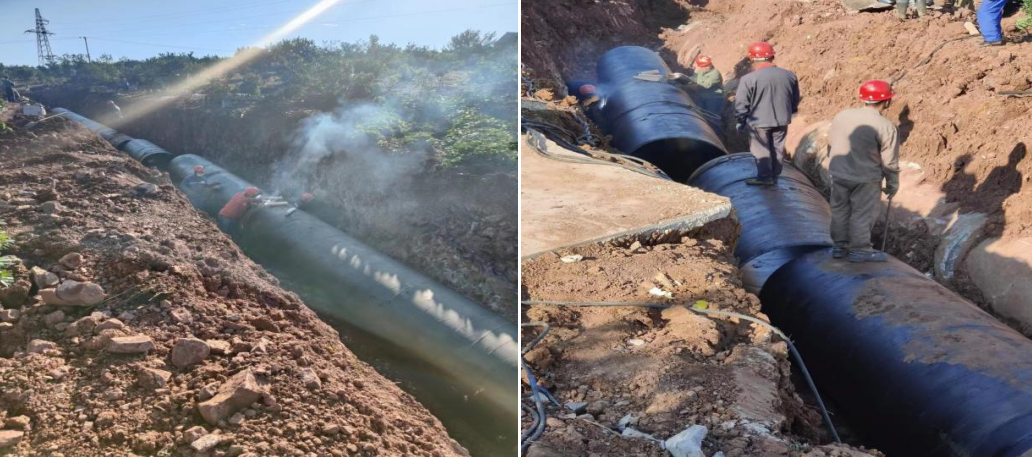 各部門精誠合作,克服復(fù)雜地形、調(diào)度和運輸困難等諸多不利因素,堅守施工現(xiàn)場,搶抓施工進(jìn)度,終于在12日晚6點完成70米DN1200鋼管焊接任務(wù),10月14日進(jìn)行管道試壓及沖洗消毒,恢復(fù)正常供水。