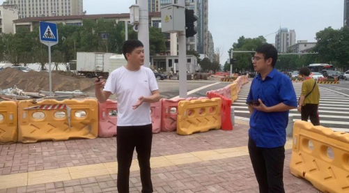 圖為集團(tuán)工作人員與小區(qū)負(fù)責(zé)人對(duì)接用水需求
