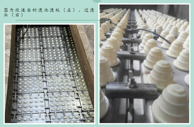 今年,一水廠通過改造濾池,再換“新顏”。經(jīng)過前期市場調(diào)研和試用,集團采用新型不銹鋼濾板加濾頭,替代原先的濾磚,不僅提高了過濾效率和過濾后水質(zhì),還提高了廠內(nèi)設(shè)備的運行效率。改造后,水廠水濁度保持在0.3NTU-0.4NTU,較之前降低了30%,水質(zhì)提升效果顯著。