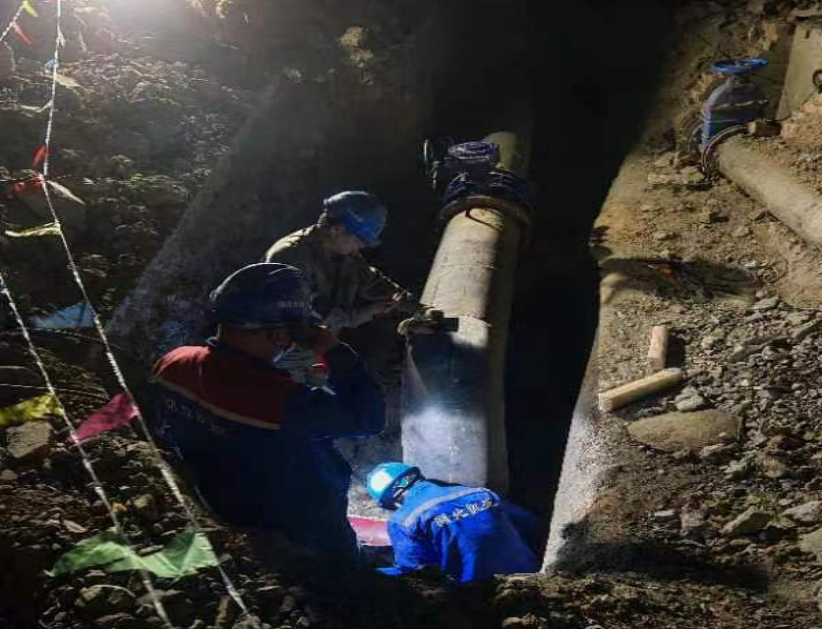 24日晚22時(shí)開(kāi)始停水施工,工作人員在作業(yè)坑內(nèi)各司其職,排水、切割、加裝管夾、安裝三通、加裝閥門(mén)……工作現(xiàn)場(chǎng)緊鑼密鼓,人機(jī)作業(yè)井井有條,經(jīng)過(guò)5小時(shí)連續(xù)施工,圓滿完成碰頭施工,比原計(jì)劃提前3小時(shí)通水。