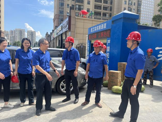 黨委書記、董事長陳永根帶隊分別在高鐵片區(qū)給水工程項目、五一路公共停車場項目和飛揚新天城二期管道直飲水項目現(xiàn)場仔細詢問施工進度和下階段施工計劃。他強調(diào)機關(guān)部門要加強資源科學配置,主動參與、積極協(xié)調(diào)生產(chǎn)經(jīng)營一線的具體問題,保障各二級單位在高峰保供期間能打贏、打的贏。陳永根與一線員工親切攀談,叮囑大家要科學安排作業(yè)時間,做到勞逸結(jié)合。