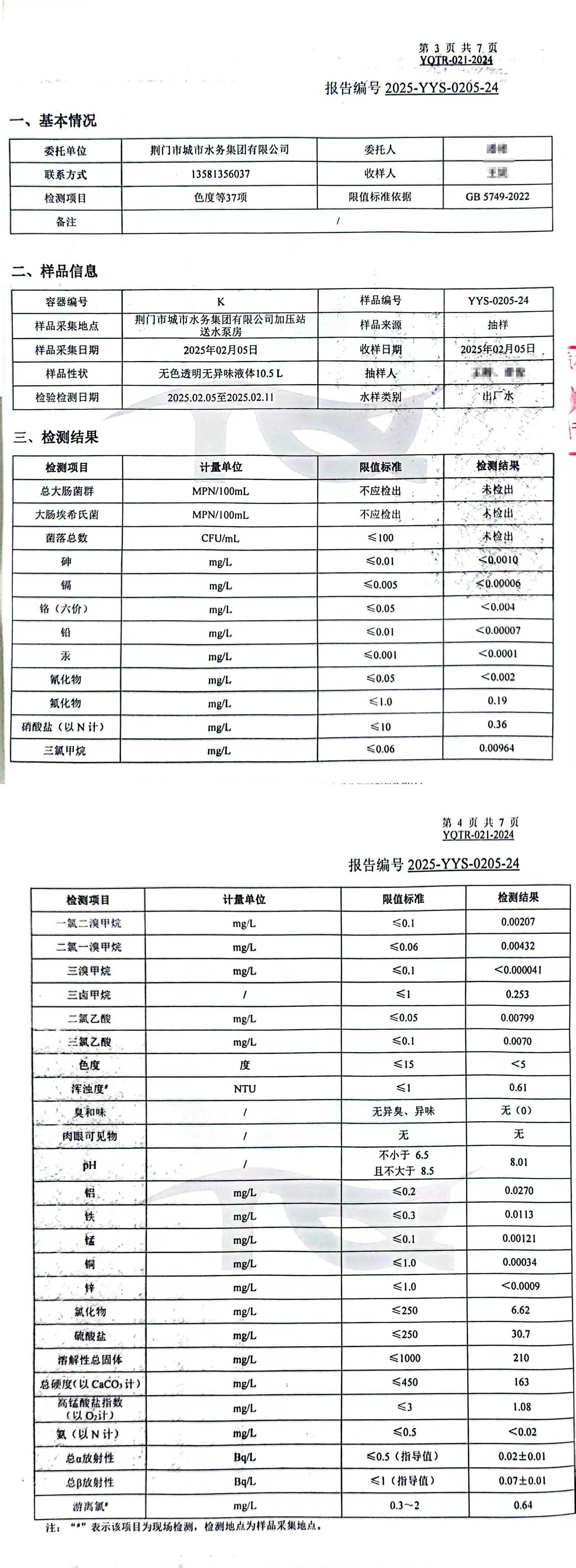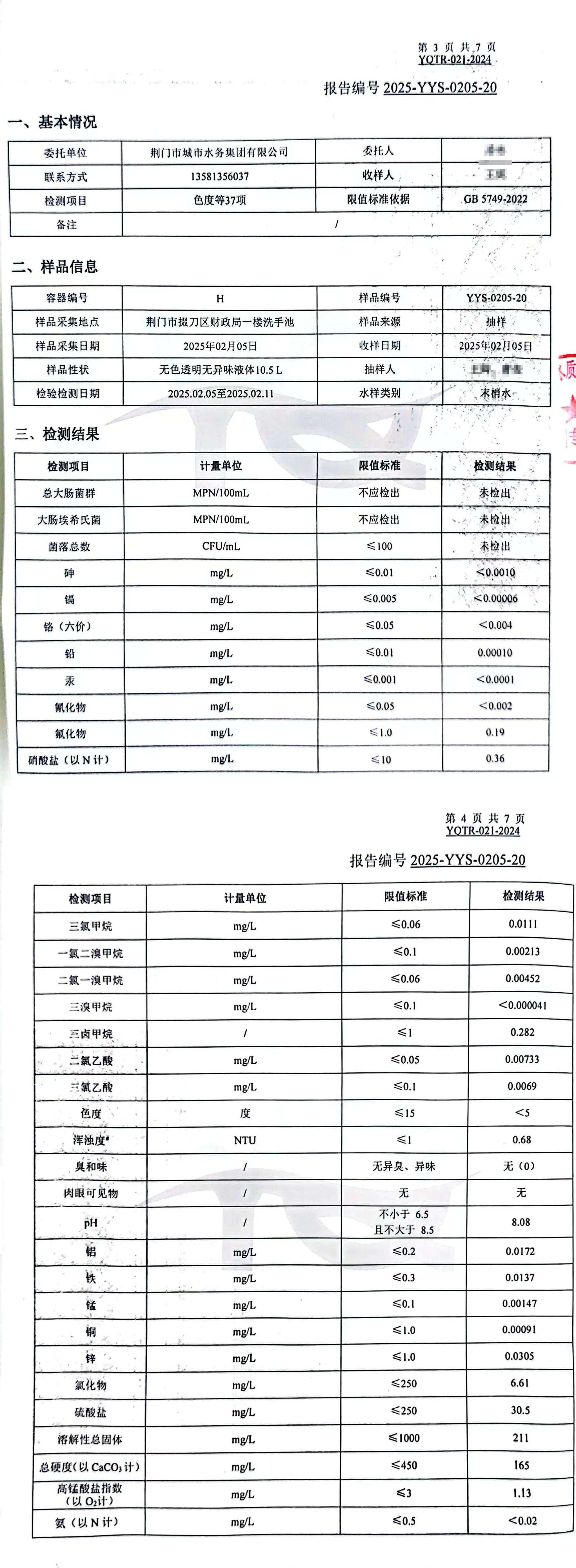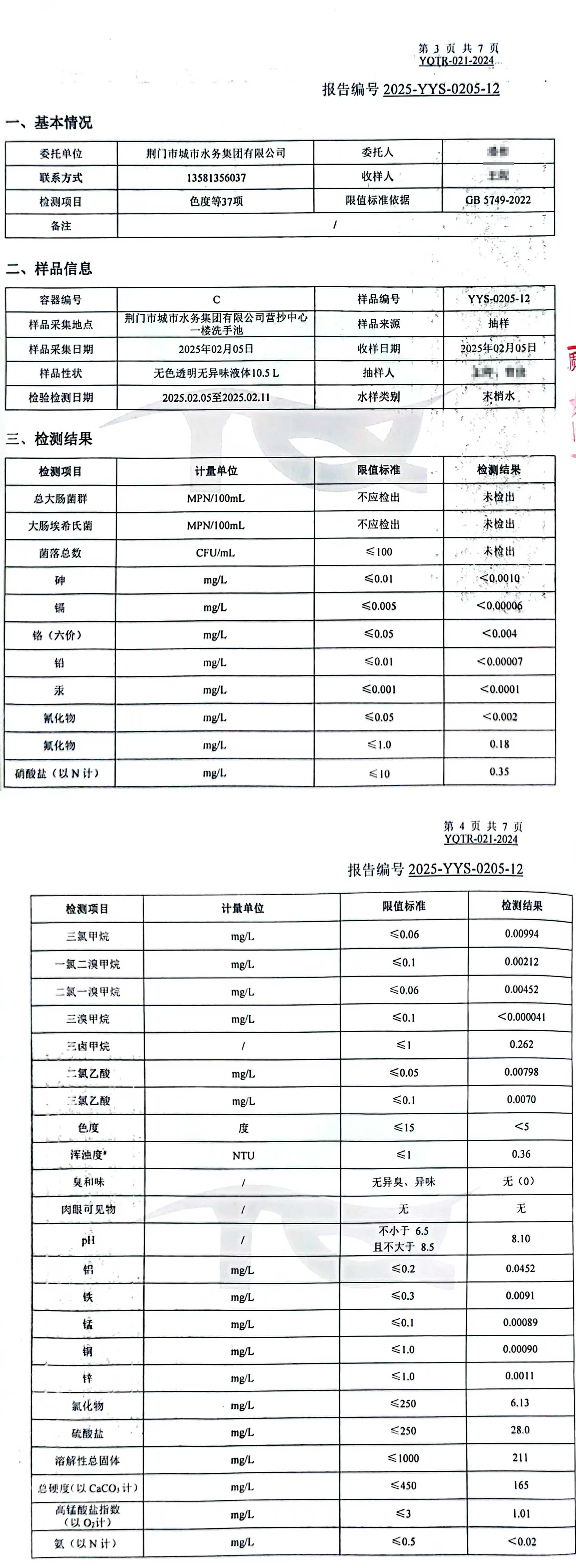 2025年2月,集團委托具有CMA認證資質的第三方檢測機構,依據(jù)《生活飲用水衛(wèi)生標準》(GB5749-2022)對“四廠一站”出廠水、管網(wǎng)末梢水進行全分析檢測,水質合格率100%。依據(jù)《地表水環(huán)境質量標準(GB3838-2022)》檢測漳河原水,檢測結果為符合Ⅱ類標準。