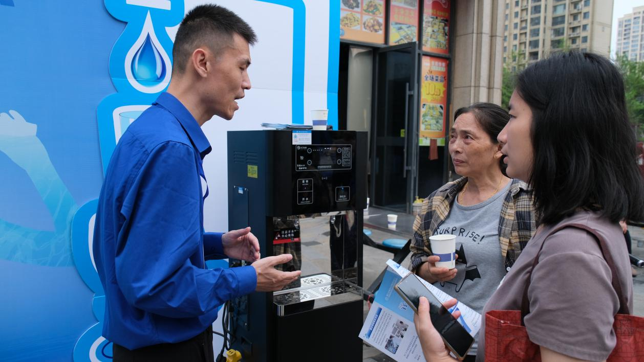 直飲水建設成果展區(qū):市水務集團講解員通過展板與水質檢測設備,詳細介紹全市直飲水管網(wǎng)布局、水質標準(優(yōu)于國家標準)及已服務超3萬戶家庭的實踐成果。