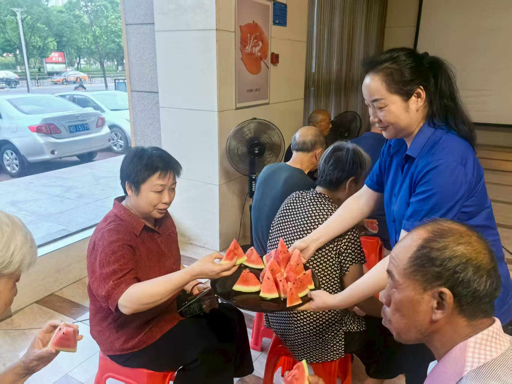 活動尚未開始,入口處已是一派熱鬧景象。物業(yè)工作人員早早備好冰鎮(zhèn)綠豆湯、清甜西瓜與礦泉水,為陸續(xù)到場的居民遞上夏日清涼。趁居民就座間隙,工作人員結(jié)合案例,生動講解消防隱患排查、電信詐騙防范等實(shí)用知識,“手把手”教大家識別騙局、掌握逃生技巧,在輕松互動中筑牢社區(qū)安全防線。