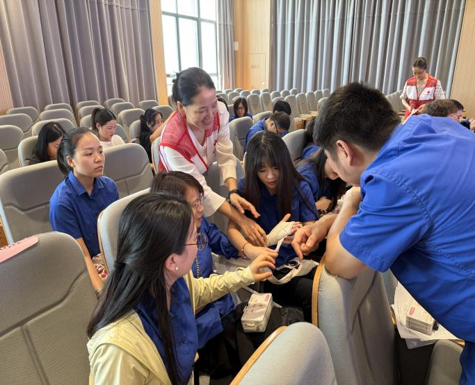 本次培訓(xùn)內(nèi)容豐富實(shí)用,既涵蓋國(guó)際紅十字運(yùn)動(dòng)基本知識(shí)、救護(hù)新概論等理論內(nèi)容,又聚焦現(xiàn)代救護(hù)技術(shù)開(kāi)展實(shí)操訓(xùn)練。培訓(xùn)中,講師系統(tǒng)講解心肺復(fù)蘇與AED操作技能,通過(guò)現(xiàn)場(chǎng)演示、手把手指導(dǎo),幫助參訓(xùn)人員熟練掌握這一關(guān)鍵生命救護(hù)技術(shù);在創(chuàng)傷救護(hù)環(huán)節(jié),不僅細(xì)致講解止血、包扎、骨折固定等基礎(chǔ)方法,還針對(duì)氣道異物梗阻、燒燙傷、踝關(guān)節(jié)扭傷等常見(jiàn)意外傷害的現(xiàn)場(chǎng)處理展開(kāi)深入教學(xué)。