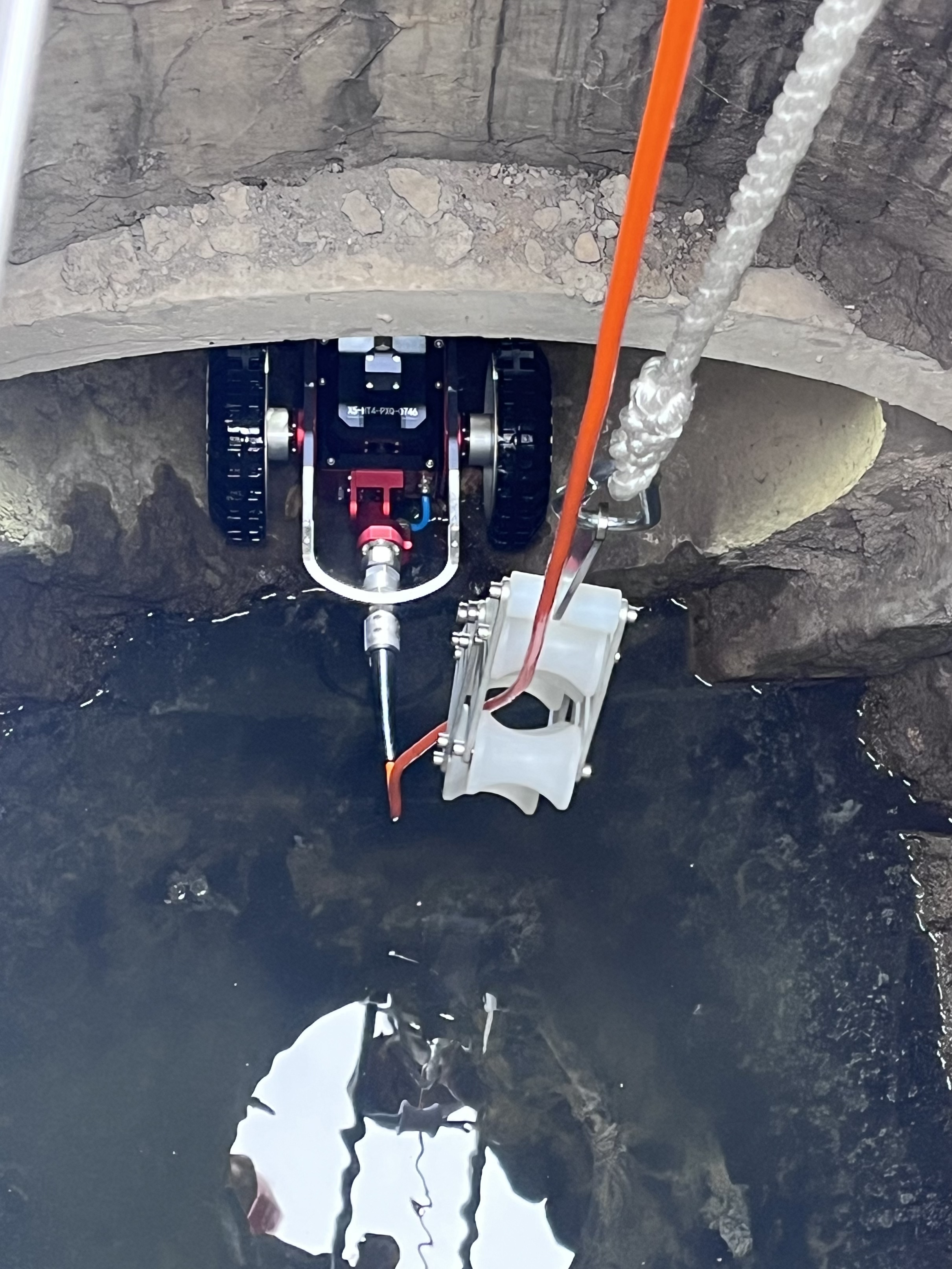 隨后,實戰(zhàn)演練正式拉開帷幕。在管道排查現(xiàn)場,參訓(xùn)學(xué)員分組實操,授課老師全程跟蹤指導(dǎo),及時糾錯,確保每位員工都能熟練掌握機(jī)器人的使用技巧。隨著機(jī)器人在管道內(nèi)靈活穿梭,高清畫面實時傳輸至控制終端,管道內(nèi)部的每一處細(xì)節(jié)都清晰可見。大家一邊操作,一邊根據(jù)畫面反饋調(diào)整機(jī)器人姿態(tài),精準(zhǔn)捕捉管道裂口、錯口、沉降等故障點。