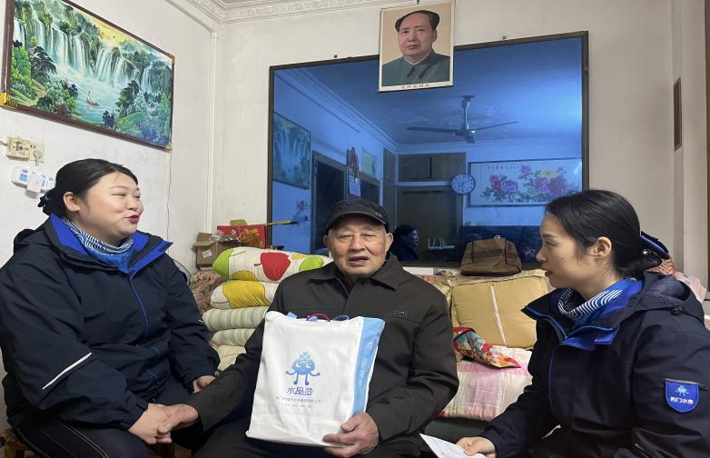幫扶始于牽掛,情暖獨居老人。工作人員專程走訪87歲的李爺爺。老人年前痛失老伴,情緒一直低落。工作人員耐心陪伴、悉心安撫,用真誠驅(qū)散孤寂。這份牽掛始于2025年3月,當時老人家中突發(fā)漏水,收費員陳玲玲第一時間上門處置,快速化解難題。此后,她持續(xù)關注老人用水狀況,定期檢查設施、提醒安全注意事項,長久的貼心照料,讓老人漸漸走出陰霾,親切地稱呼她為“玲姑娘”。