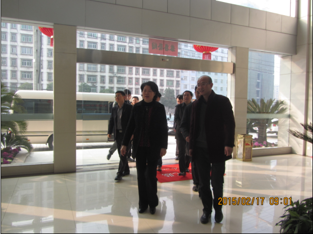 2月17日,市長(zhǎng)肖菊華(前排左) 副市長(zhǎng)張尚貴等領(lǐng)導(dǎo)到公司視察慰問,肖市長(zhǎng)一行先后視察了泉口營(yíng)業(yè)大廳、調(diào)度監(jiān)控中心、水表所,向供水一線員工表示親切慰問。市住建委黨委書記、主任楊劍、黨委委員、副主任李軍華陪同慰問,公司黨委書記、總經(jīng)理陳永根陪同慰問、介紹春節(jié)供水值班情況。