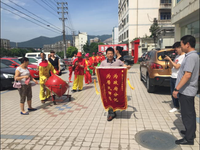 7月31日,虎牙關(guān)社區(qū)和用戶代表組織腰鼓隊到總公司送錦旗致謝。據(jù)悉,掇刀城南新區(qū)金苑大市場主、分水管網(wǎng)嚴(yán)重老化,水管破損而致停水。市供水總公司客服部門快速勘測報裝,維修處迅速組織施工,并調(diào)派應(yīng)急供水車在改造期間為商戶送水。
