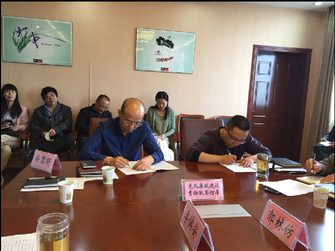 4月28日,公司召開(kāi)黨委中心組擴(kuò)大會(huì)議,對(duì)“兩學(xué)一做”活動(dòng)做出安排部署,并進(jìn)行系統(tǒng)理論學(xué)習(xí)。會(huì)前,黨委書記、總經(jīng)理陳永根、黨委副書記、紀(jì)委書記、工會(huì)主席徐黎明分別與各支部書記、各單位(處室)負(fù)責(zé)人簽訂2016年黨風(fēng)廉政建設(shè)責(zé)任狀。