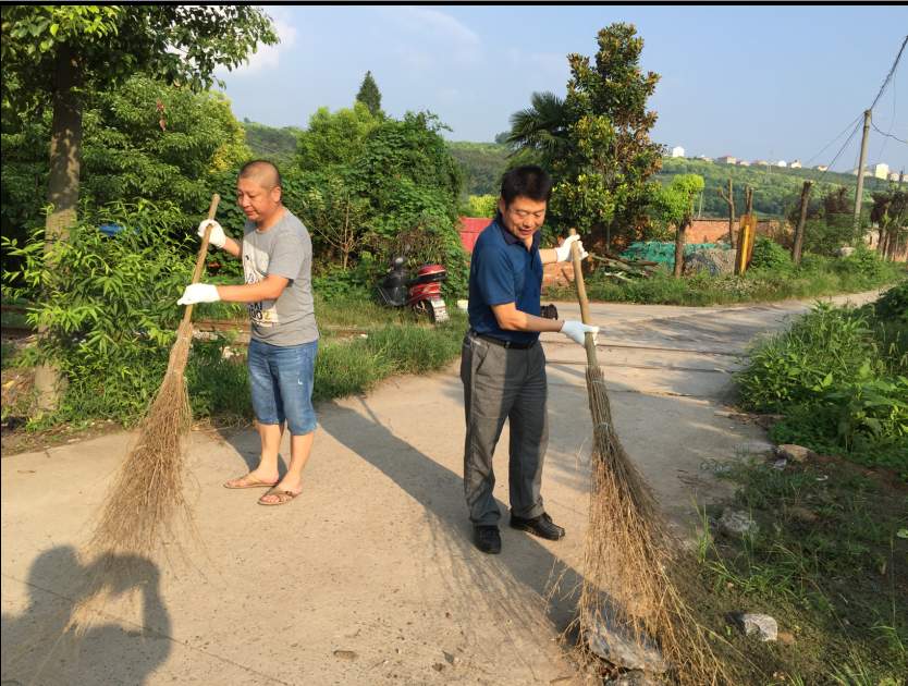 8月13日,烈日炎炎,公司黨委副書記、紀委書記、工會主席徐黎明帶領(lǐng)辦公室、物業(yè)公司相關(guān)人員,利用周休時間,支持社區(qū)創(chuàng)衛(wèi)工作,對社區(qū)毛湖沖居民點道路進行衛(wèi)生清掃,對陳年垃圾丟棄點進行集中清理。圖為清掃現(xiàn)場。