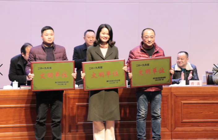 1月18日下午,荊門市供水總公司2019年度總結表彰大會和以“不忘初心供水情”為主題的典型模范人物頒獎晚會在荊門劇院舉行。